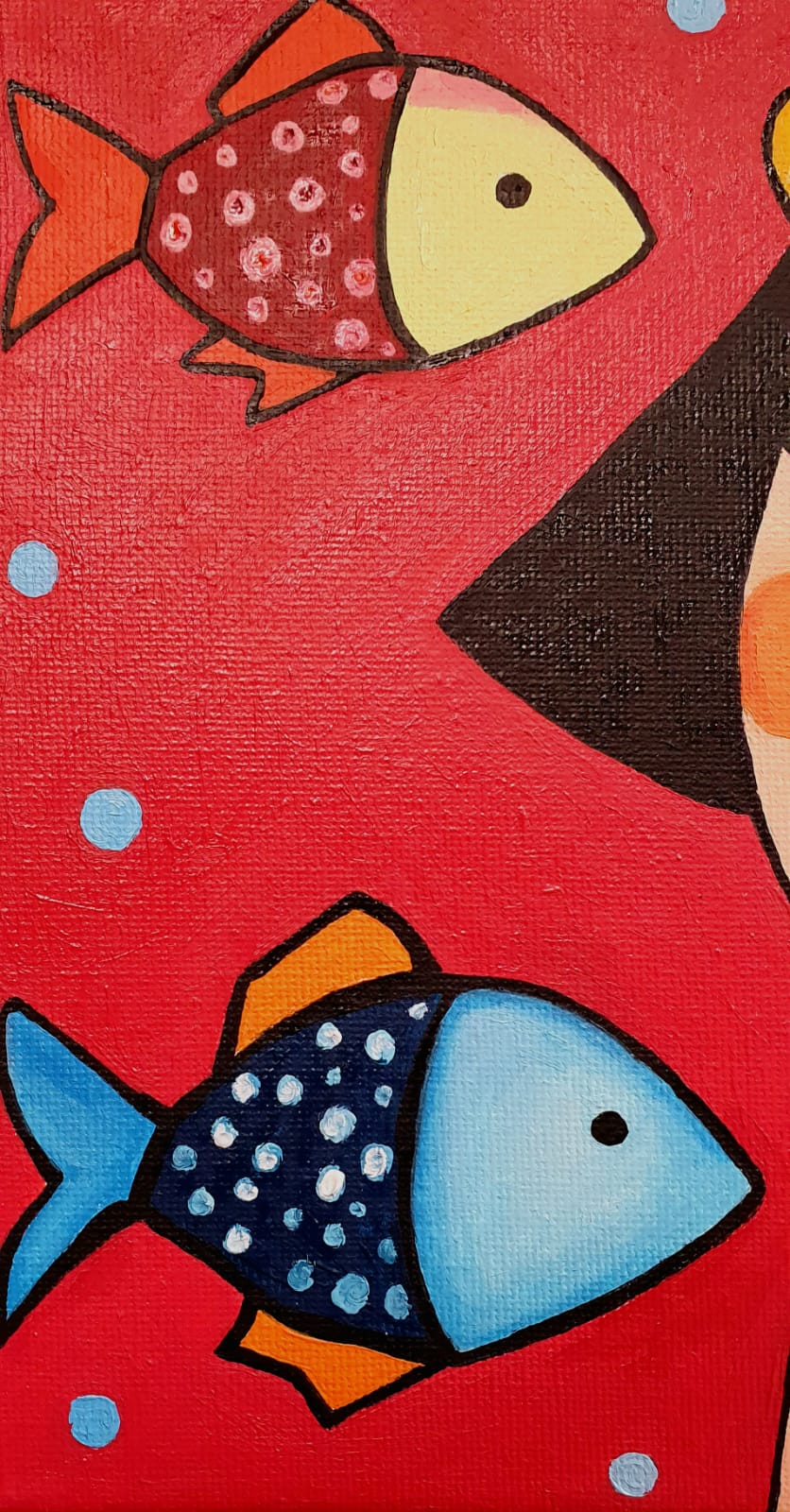 En esta obra, dejo que OLA MIA se sumerja en el silencio para hablar con los peces, como quien conversa con sus pensamientos más profundos.
